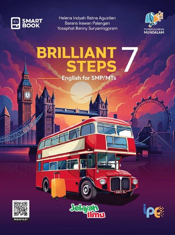 Buku Brilliant Steps 7 English for SMP/MTs disusun berdasarkan Capaian Pembelajaran Bahasa Inggris Fase D terbaru. Melalui buku ini, murid mempelajari penggunaan bahasa Inggris dalam berbagai jenis teks lisan, tulisan, dan visual, termasuk teks deskriptif serta prosedur. Materi yang disajikan melatih murid untuk berinteraksi dan berkomunikasi dalam konteks yang beragam, baik dalam situasi formal maupun informal.