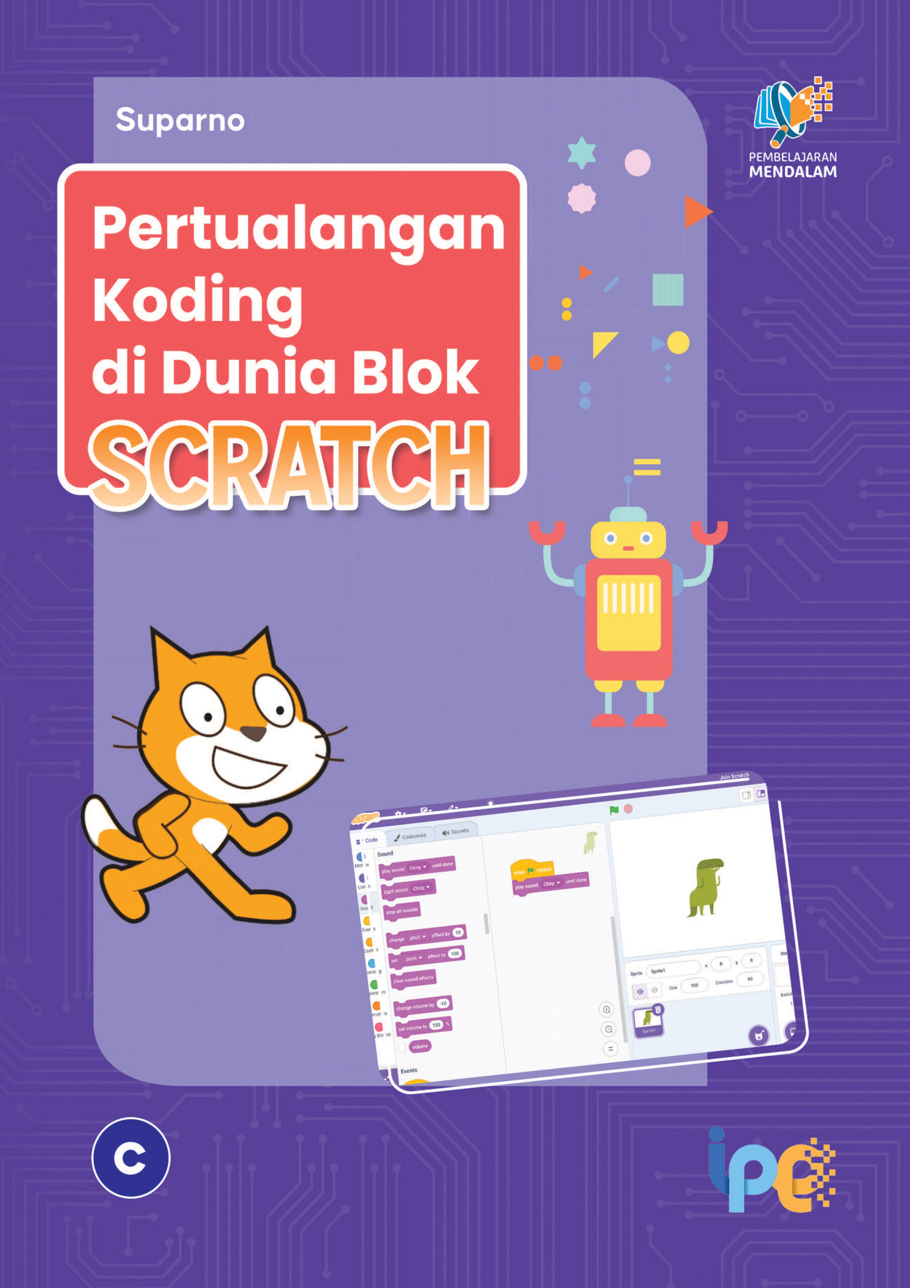 Buku Pertualangan Koding di Dunia Blok Scratch adalah panduan yang mengenalkan peserta didik pada Scratch, sebuah alat yang menyenangkan untuk belajar koding. Buku ini menggunakan pendekatan interaktif dengan menyajikan konsep-konsep dasar koding melalui blok-blok kode yang disusun seperti puzzle. Secara umum, buku ini berisi pengenalan terhadap Scratch, cara menggerakkan karakter, menambahkan suara, membuat animasi, serta menciptakan permainan dan cerita interaktif. Langkah-langkah yang disajikan mudah dipahami dan dilengkapi dengan gambar serta contoh untuk memudahkan praktik. Buku ini mengajak peserta didik untuk bertualang dalam dunia koding berbasis blok, mengembangkan kreativitas, dan menciptakan berbagai proyek seru. Sementara itu, perwajahan kover dan isi buku dibuat menarik dengan gambar-gambar yang dapat menambah semangat belajar. Gambar-gambar tersebut juga dapat membantu peserta didik untuk memahami materi yang dipelajari.