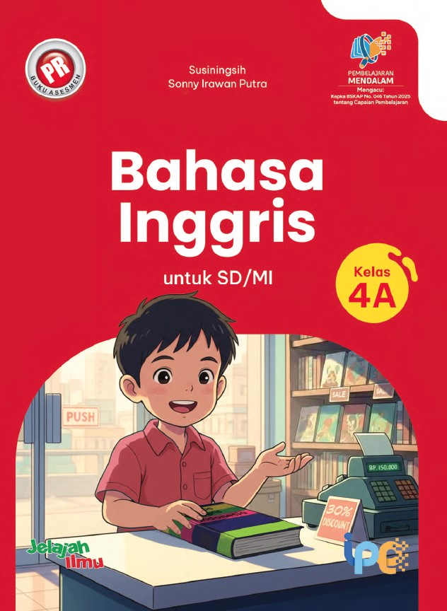 Buku PR Bahasa Inggris untuk SD/MI Kelas 4A disusun berdasarkan Capaian Pembelajaran kelas terkait dengan mengadopsi buku pelajaran yang diterbitkan pemerintah. Di awal buku terdapat panduan penggunaan buku yang memudahkan peserta didik dan guru melaksanakan kegiatan belajar mengajar menggunakan buku ini. Setiap bab terdiri atas tujuan pembelajaran, peta konsep, apersepsi, kata kunci, pendalaman materi, serta fitur-fitur berupa aktivitas, cakap literasi, jelajah kosakata, projek, info penting, dan refleksi. Selain itu, buku ini dilengkapi dengan audio menyimak (listening) dan multimedia dalam bentuk video maupun interaktif sehingga pembelajaran akan berlangsung menarik dan menggembirakan. Buku ini juga dilengkapi dengan berbagai asesmen, yaitu asesmen diagnostik di awal bab, asesmen harian di setiap akhir bab, asesmen tengah semester, dan asesmen akhir semester. Asesmen-asesmen tersebut diberikan untuk mengukur ketercapaian kompetensi peserta didik melalui tes tertulis.
