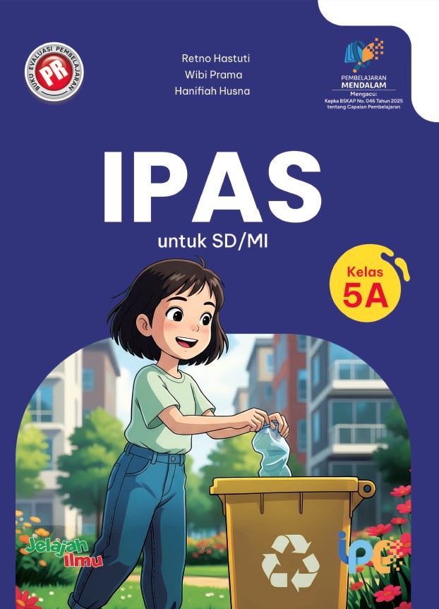 Buku PR IPAS untuk SD/MI Kelas 5A ini membahas tentang melihat Indonesia lebih dekat, kegiatan ekonomi daerahku, jalinan kehidupan dalam ekosistem, dan air sumber kehidupan. Materi disusun sesuai capaian pembelajaran dalam kurikulum terbaru. Penyajian materi menggunakan pendekatan pembelajaran aktif (active learning). Materi disajikan dengan visualitas menarik yang dilengkapi infografik, media interaktif, dan skema/bagan. Buku ini juga dilengkapi banyak fitur pendukung dan kegiatan interaktif yang membantumu menguasai kompetensi dengan menggembirakan.