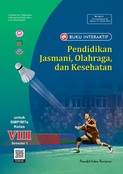 「Penyusun」 Brilliant Nur Rahmawan Muhammad Rizky Arya L Ary Setyaningsih 「Deskripsi」 Buku Interaktif Pendidikan, Jasmani, Olahraga dan Kesehatan untuk SMP/MTs Kelas VIII Semester 1 telah bersinergi dengan Rumah Juara, sebuah aplikasi pembelajaran yang fokus ke latihan soal. Selain latihan soal, aplikasi Rumah Juara menyediakan materi pendukung pembelajaran berupa e-book dan Wasantara. Aplikasi ini dapat diunduh